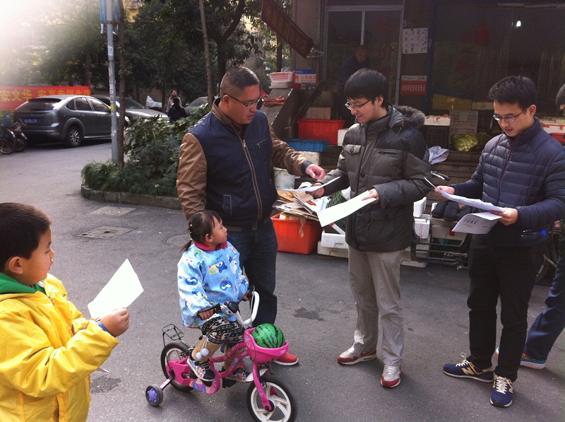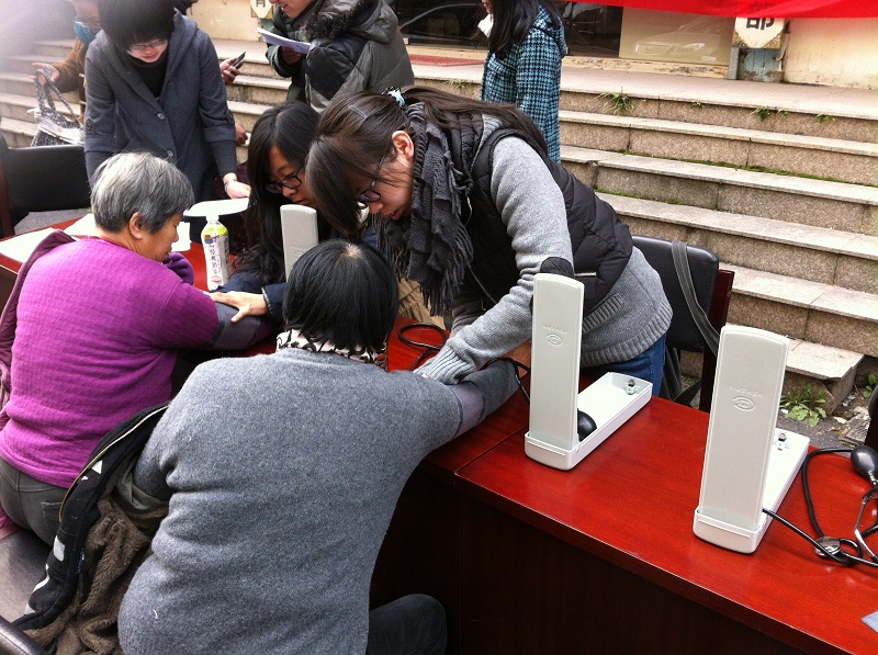2014年12月07日上午,七年临床1003班同学在西湖区桃源春居文华社区进行了健康咨询、血压测量、按摩等活动。