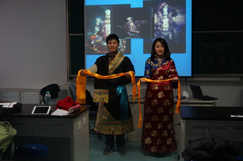 本次活动由13预防级预防学生巴桑普赤、达娃曲珍(藏族)及另外两名同学自主策划完成。活动以现场访谈的方式进行,两位藏族同学担任访谈嘉宾,另外两位同学担任主持,向大家分别介绍了关于西藏的服饰文化、饮食文化、民族信仰、藏语及藏文字、热门景点等民族风情元素,更有现场同学的趣味提问,活动氛围十分轻松活跃基本达到了预定效果。由于现场同学的积极参与,原定1.5个小时的活动,足足用了2.5个小时。主持同学虽然很累,但同学们能通过本次活动了解西藏,增长见识也是极好的。