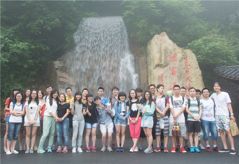 愉快的野炊结束了,大家带着充沛的精力向天目山进军。一路上山,一路伴着分级而下的瀑布,凉爽的空气使大家感到心旷神怡。拾级而上,迎面见到绿绿的水面上有悬吊的木桥,同学们纷纷尝试着过桥,桥紧紧贴在水面上,过每一节时都伴随着整个铁索的摇晃,只得紧紧抓住铁索,还是颇费了一番体力,但是大家都玩得非常开心。爬到半山腰,同学们感到有些累了便坐下休息,大家一边聊天,一边把自己带的零食与别人分享。刘程同学拿出埙,为大家吹奏了几曲,颇具商周之精神气质,把大家的思绪带向悠远的历史。休息好之后大家继续前进,饱览着天目山的奇岩怪石,流泉飞瀑,一路登顶,竟也忘记了疲惫,只剩下满眼的美景和愉快的心情。