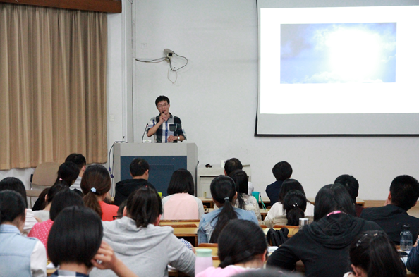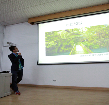 之后由14级硕士外科班班长陈天池与同学们分享科研路上的点滴心得。作为科研型研究生,陈天池向对科研充满期待的同学们透露了科研生活的大致模样。他讲到,科研生活是辛苦而忙碌的,科研人应该有吃苦耐劳的精神,要有团队意识,同时积极向上的心态也是十分重要的。此外,他还给同学们分享了杭州周边的多处美景,并鼓励同学们培养并坚持自己的兴趣爱好,能有一技之长。