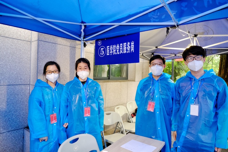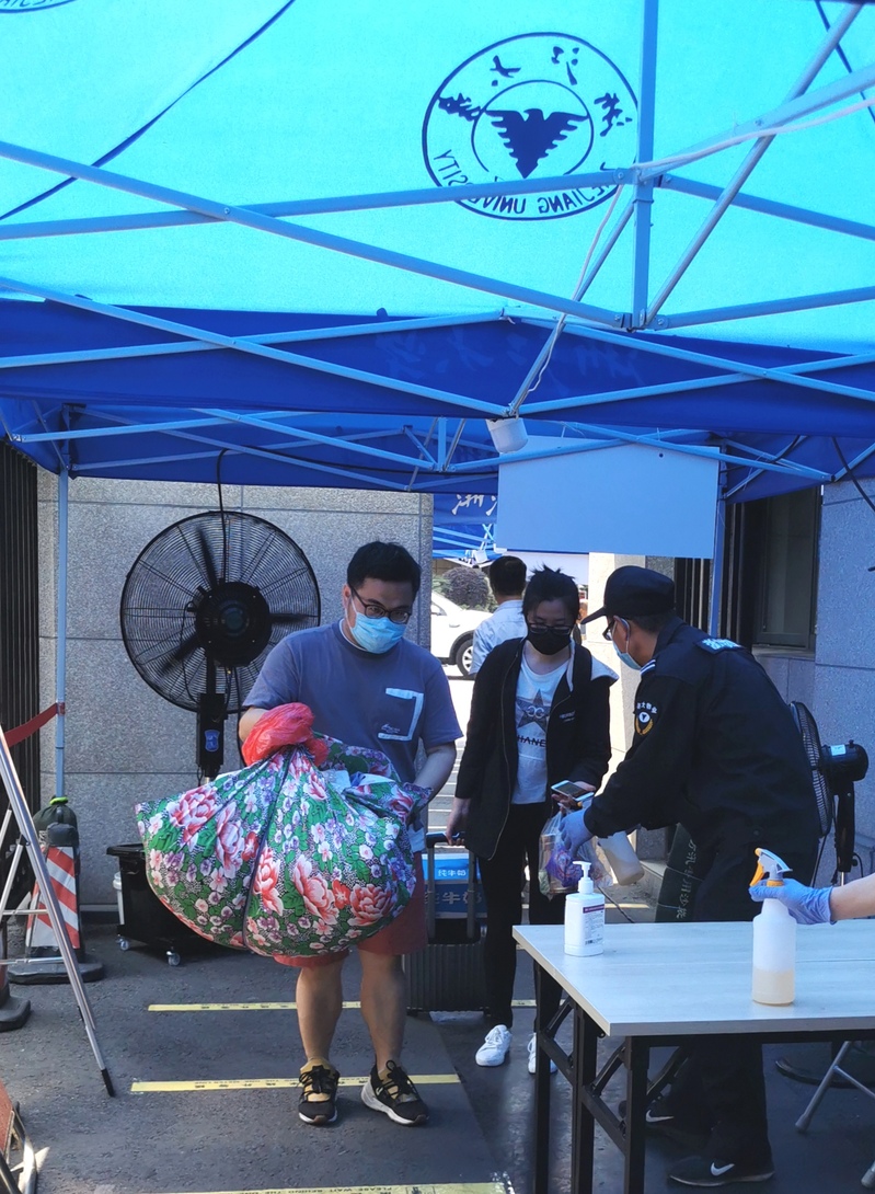 华家池畔,医学院60余名党员志愿者日夜接力,迎接2753名医学生顺利返校