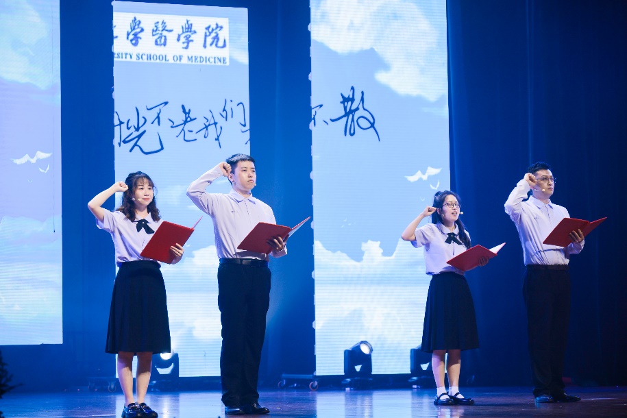 晚会由杏林艺术团表演的《lalaland》拉开帷幕,雷江楚、丁璐彤、王文浩、刘慧盈四位医学院学子担任主持。