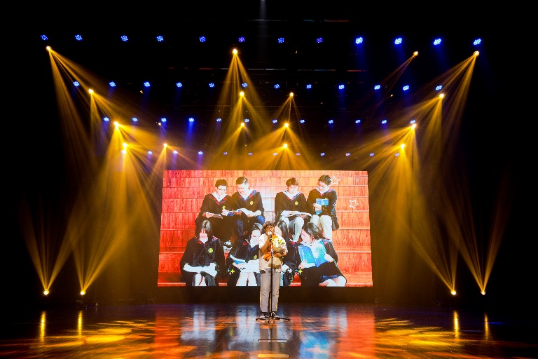 最后篇章为“医路初心不改 梦想扬帆起航”,充满了对未来的幻想和期待。《优秀毕业生分享》是散作满天星的人生规划,《若能绽放光芒》展现青年们的坚定愿望;既有《不说再见》的相互约定,也有《Ditto the story,end to Tail》的悸动与热忱。该篇章压轴的是18级本科生辅导员田子钰带来的《你有多久没有抬起头认真地数过星星》,道尽了对各位毕业生的不舍与祝福。最后的节目《道别是一件难事》和《再回首》,更是祝福毕业生们能无悔于初心,无愧于梦想,继续书写人生新篇章。